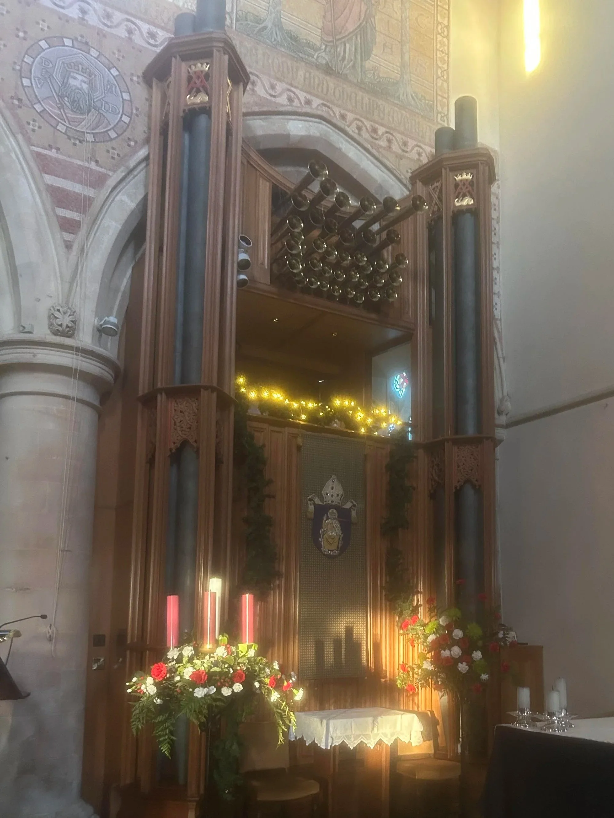 Today's instrument is a product of various rebuilds, re-sitings and enlargements, the last of which took place in 2011. This particular rebuild expanded the instrument to three manuals and pedals and incorporated the splended Solo Trumpet stop with its projecting brass resonators.